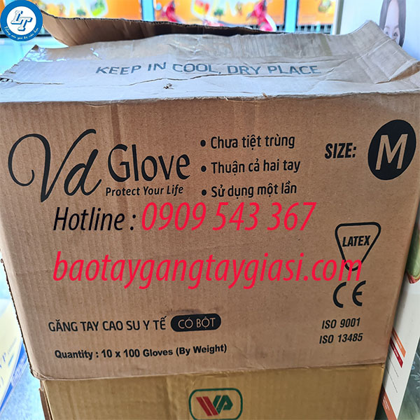 găng tay y tế Latex VDGLOVE có bột