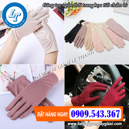 Găng tay ngắn thời trang chất lượng tại xưởng sản xuất Lê Thanh có nhiều mẫu mã phù hợp đa dạng nhiều đối tượng khách hàng khác nhau và đáp ứng tối đa mọi yêu cầu đặt hàng. Tùy theo nhu cầu và sở thích cá nhân, bạn có thể lựa chọn loại găng tay vải thời trang đủ màu sắc, găng tay họa tiết chấm bi hoặc găng tay vải trơn 1 màu.