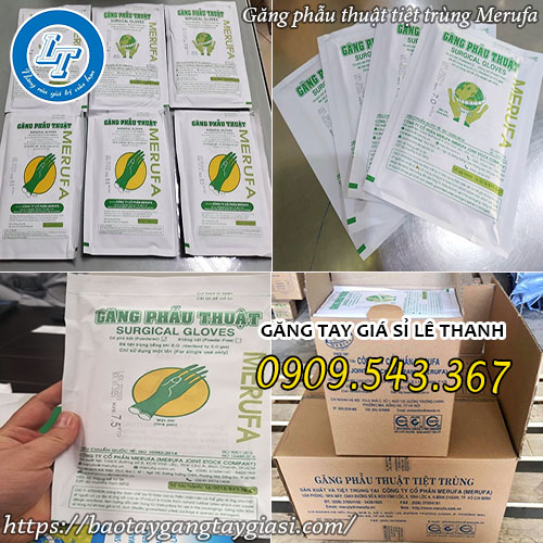 Lê Thanh chuyên phân phối găng tay phẫu thuật tiệt trùng của các thương hiệu nổi tiếng như găng tay phẫu thuật Merufa, găng tay phẫu thuật Vglove, găng phẫu thuật Tân Xuân Tâm,… Từng đôi găng tay được đóng gói kỹ càng thành một túi đựng nhỏ gọn.